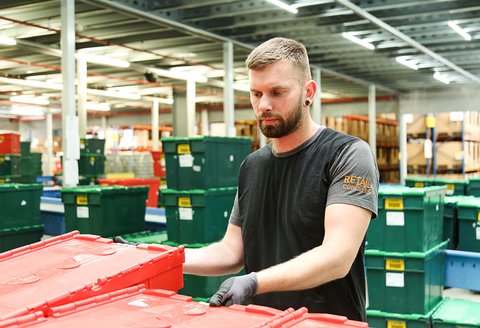 « À l'entrepôt, il faut savoir tout faire. Une fois complètement intégré, après environ un an, on doit être polyvalent. Si exceptionnellement un département est surchargé ou manque de personnel, on nous appelle en renfort. Après les soldes, par exemple, nous avons beaucoup de retours à traiter ; du personnel supplémentaire est donc envoyé dans ce département. Le travail n’en est que plus varié. »