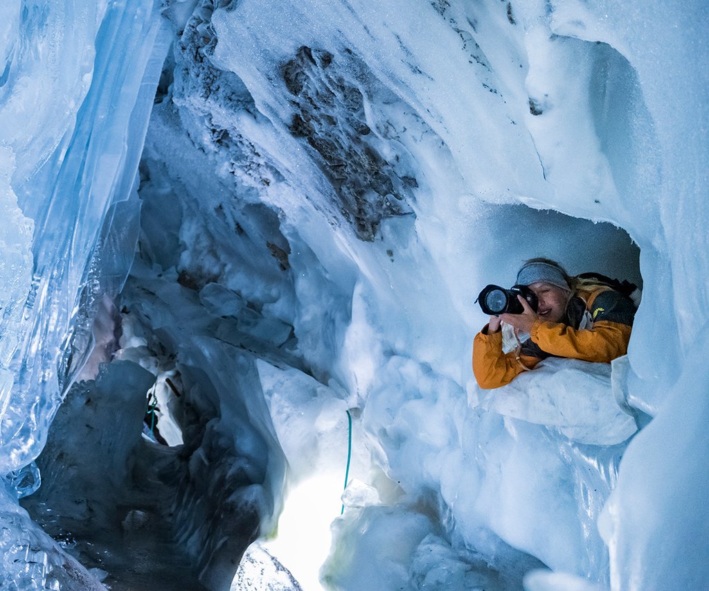 Ce système de grottes, situé juste en dessous de la ligne des glaces du glacier de Hintertux, est l'un des plus grands des Alpes centrales. Ne vous inquiétez pas : le guide connaît le chemin.