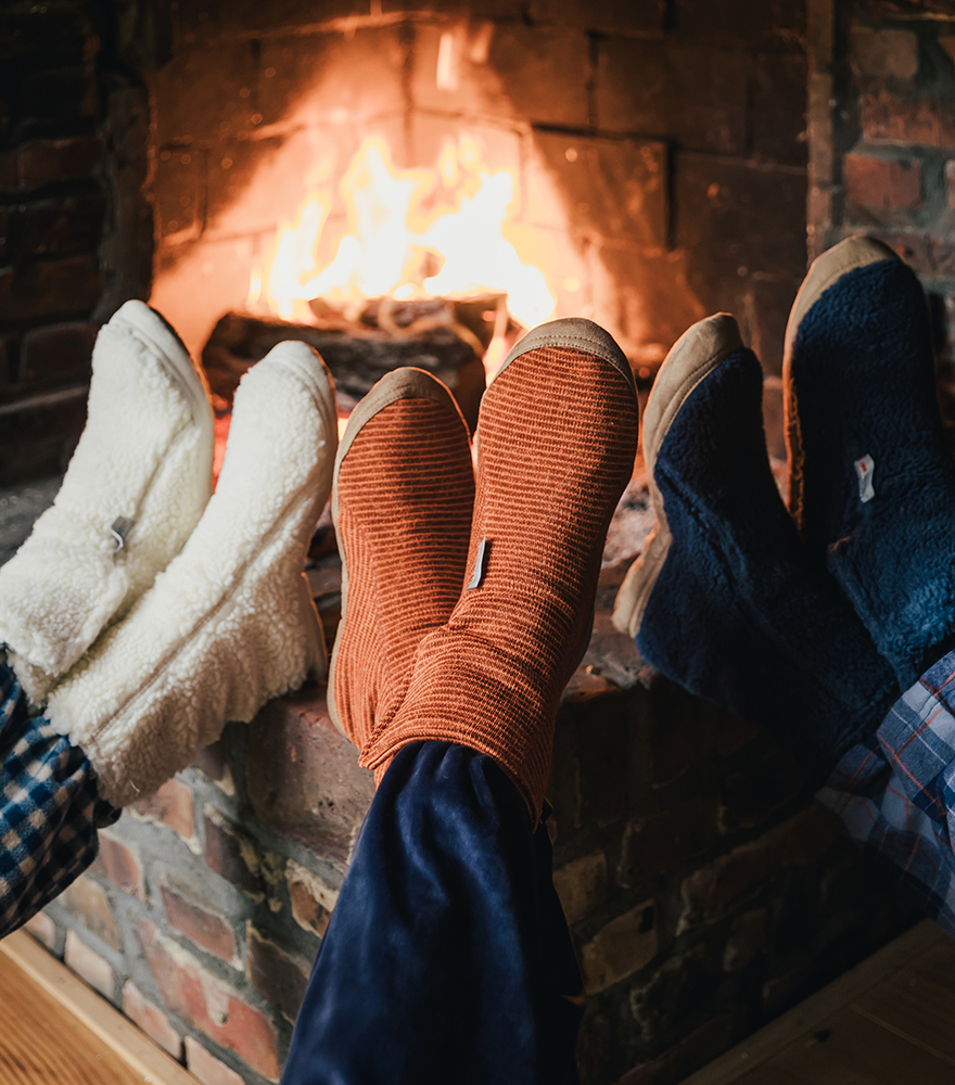 En hiver, enveloppez-vous de chaleur de la tête aux pieds. N’oubliez pas vos chaussons : vos orteils vous remercieront !