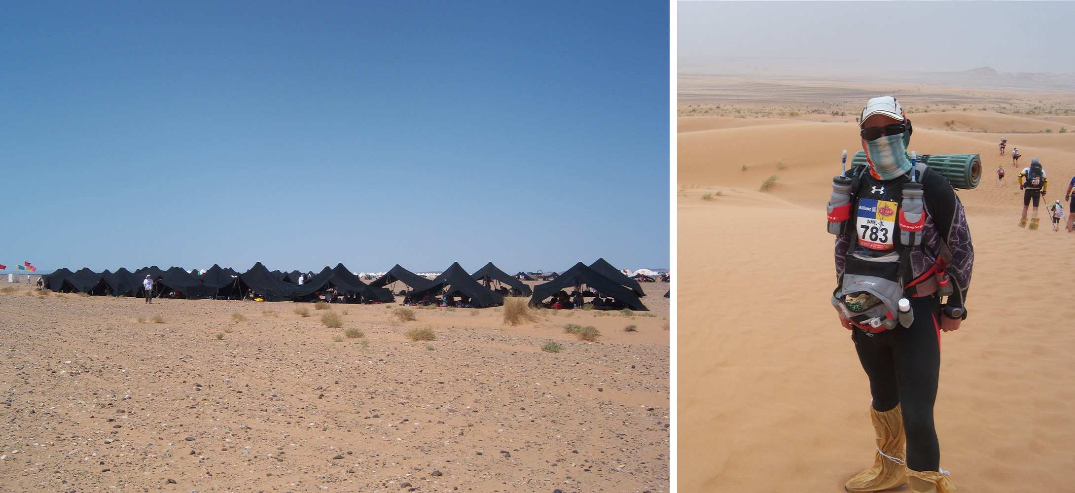 Lors de ce marathon, vous devrez non seulement courir, mais aussi survivre dans le Sahara marocain. Les participants doivent prévoir leur logement et leurs repas. Ils doivent transporter leurs effets personnels toute la journée.