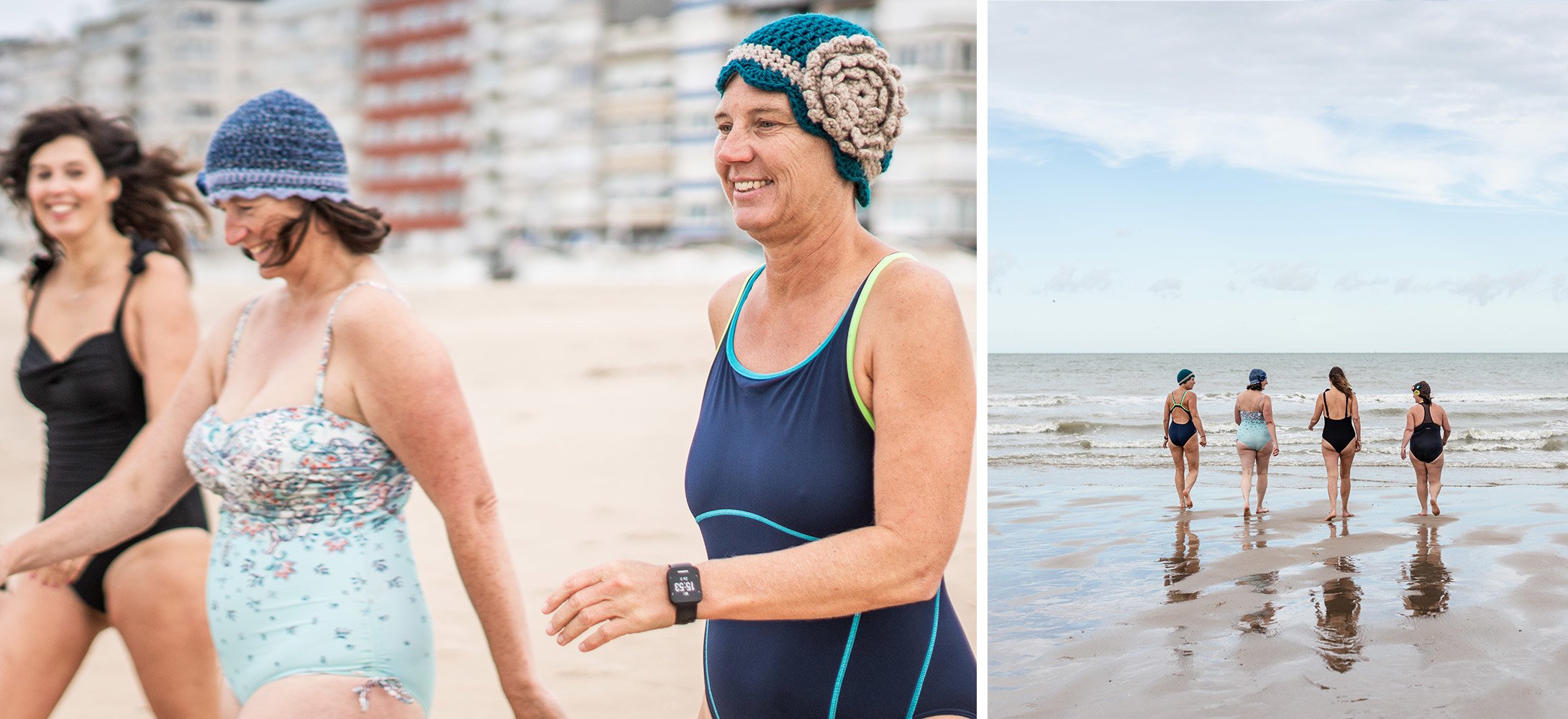 Entretemps, Haïke n’est plus la seule du groupe à frissonner. Papoter en maillot de bain par 14 degrés n’est pas une partie de plaisir, même pour des nageuses en mer chevronnées. « Ne dites pas que nous sommes des nageuses », dit Sofie. « Il est interdit de se baigner ici à cette période de l’année, il n’y a pas de sauveteurs présents. » Le bain de pieds est autorisé. « Et bavarder aussi, c’est d’ailleurs notre spécialité », plaisante Patricia. Rarement un groupe n’aura aussi bien porté son nom.