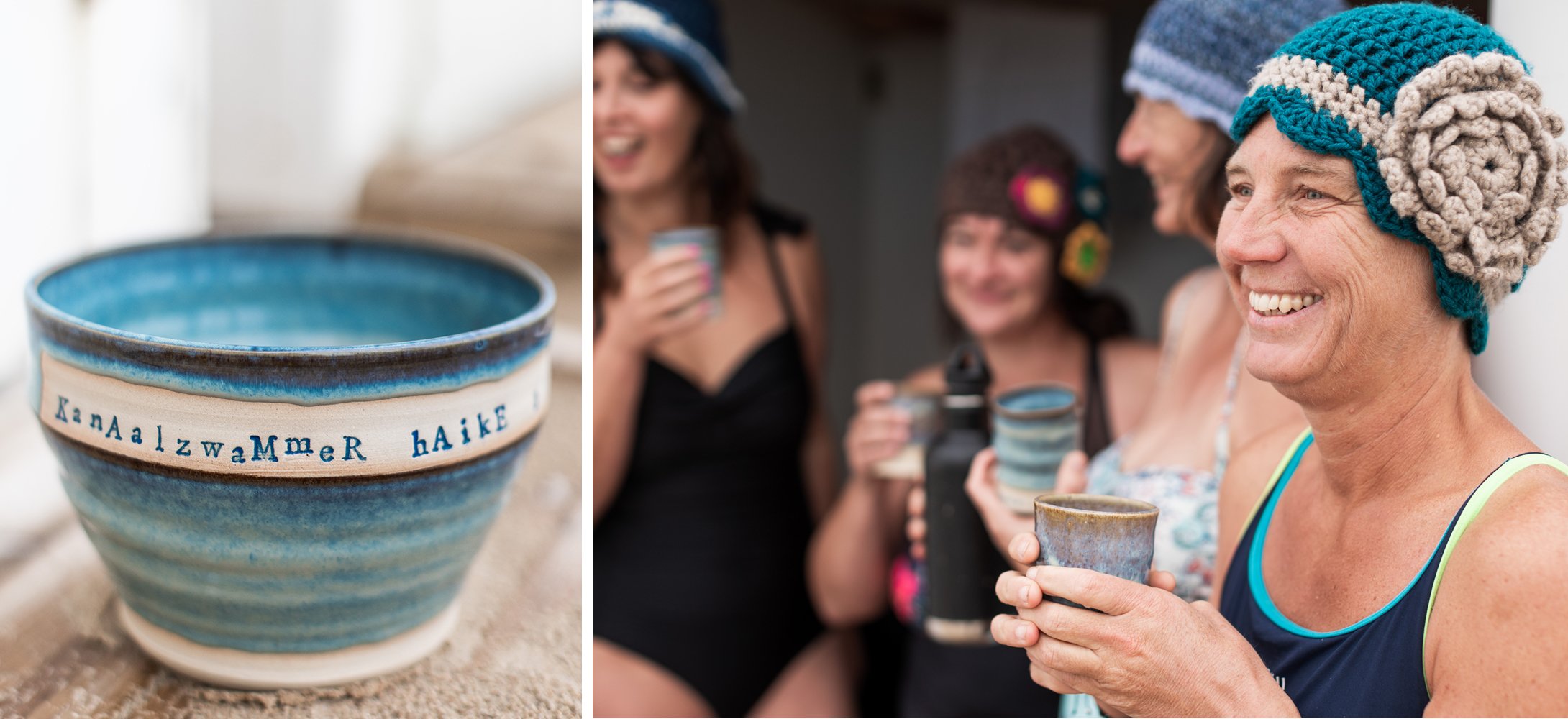 Hop, c’est parti. Un peu hésitantes au début, elles y vont bientôt à pleins poumons. Elles sautent dans les vagues, se laissent un peu dériver, Haïke nage même quelques longueurs tandis que les trois autres prennent position selon la ligne de marée telles des sirènes. Après exactement une heure, tout le monde sort de l’eau et retourne rapidement à la cabane.