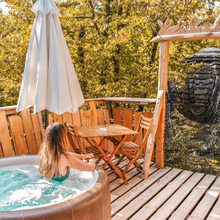 Le Bois de Rosoy, à Rosoy-en-Multien (Oise) Une cabane dans les arbres avec jacuzzi, une piscine extérieure en été, un sauna et un accueil chaleureux : voici ce qui vous attend au Bois de Rosoy, un camping insolite et écoresponsable. Envie d’action ? Vous pourrez faire du kayak sur le canal, vous promener dans la réserve naturelle, déguster de la bière dans une brasserie locale… Et tout cela à quelques encablures de l’agitation de la capitale française.