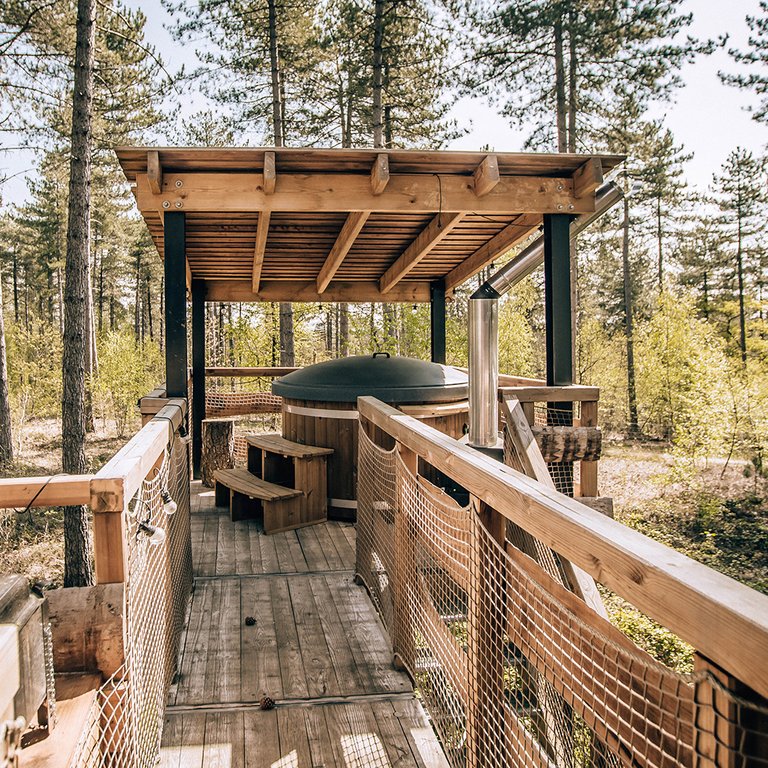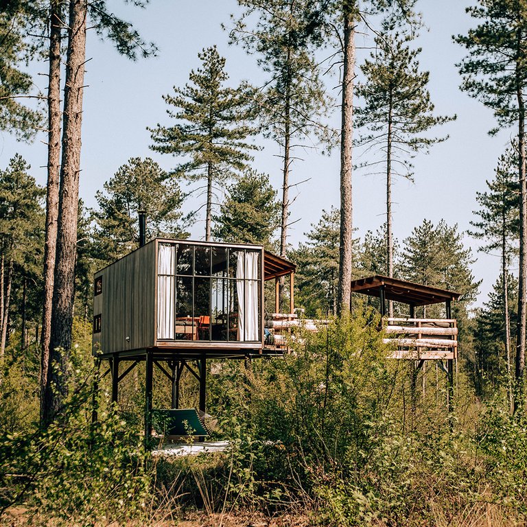 Dans ces petites maisons en bois et en verre, vous serez aux premières loges pour observer la nature environnante. Ici, pas de Wi-Fi, mais des cabanes tout confort pour vous permettre de profiter pleinement de vos vacances. Après une bonne randonnée dans les bois, vous pourrez vous blottir dans votre cocon, en lisant un bon livre près du poêle à bois, à trois mètres du sol. Les cabanes dans les arbres peuvent accueillir deux à cinq personnes.