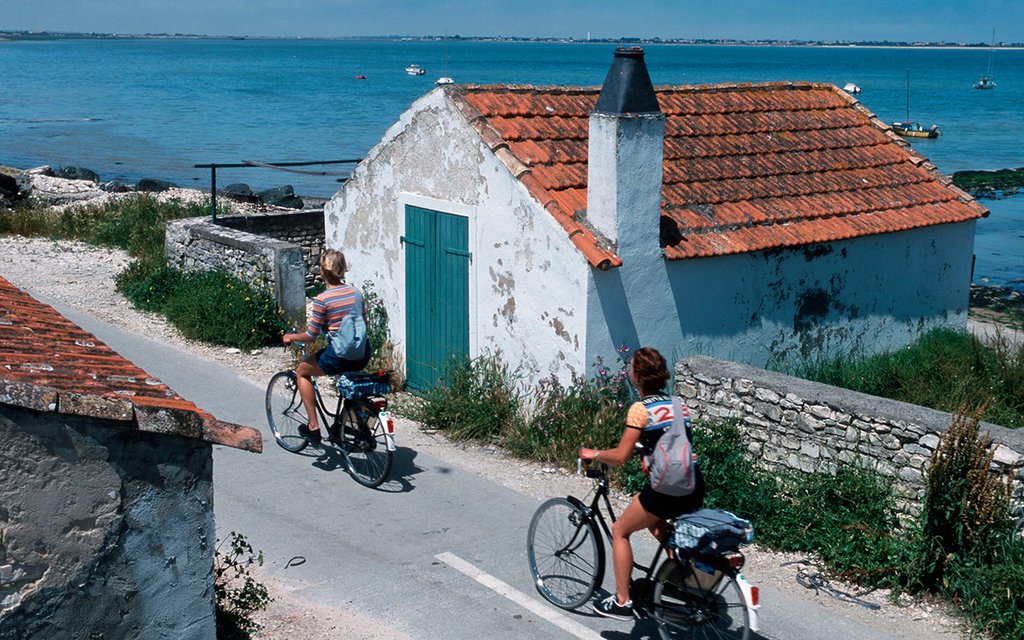 Sur l'Île de Ré, le vélo est roi. Les locaux se déplacent principalement sur deux roues et les touristes se plaisent à suivre leur exemple. Plus de 100 kilomètres de pistes cyclables permettent de découvrir les marais salants et des parcs à huîtres, passant devant des roses trémières, des jardins potagers, des marchés et des plages de sable où les enfants ramassent des coquillages - le genre de plages chantées par Charles Aznavour. Le nez au vent sur des sentiers de coquillages. Bref, que du bonheur.