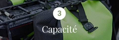 Plus vous voulez emporter de bagages, plus il vous faut de sacoches. Veillez à ce que le poids soit toujours réparti de manière équitable sur votre vélo. Ainsi, vous tiendrez mieux en équilibre et préserverez votre monture.