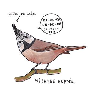 La mésange huppée est sans nul doute la plus stylée des mésanges. L'oiseau est facilement identifiable avec sa huppe tellement funky au plumage blanc et noir, qu'il redresse encore plus lorsqu'il est agité. Tout comme la mésange noire, la mésange huppée apprécie les bois de conifères. Son chant est plus strident et ronronnant. L'oiseau a aussi longuement posé sur les anciens timbres à un franc. Les moins jeunes parmi nous s'en souviennent peut-être.