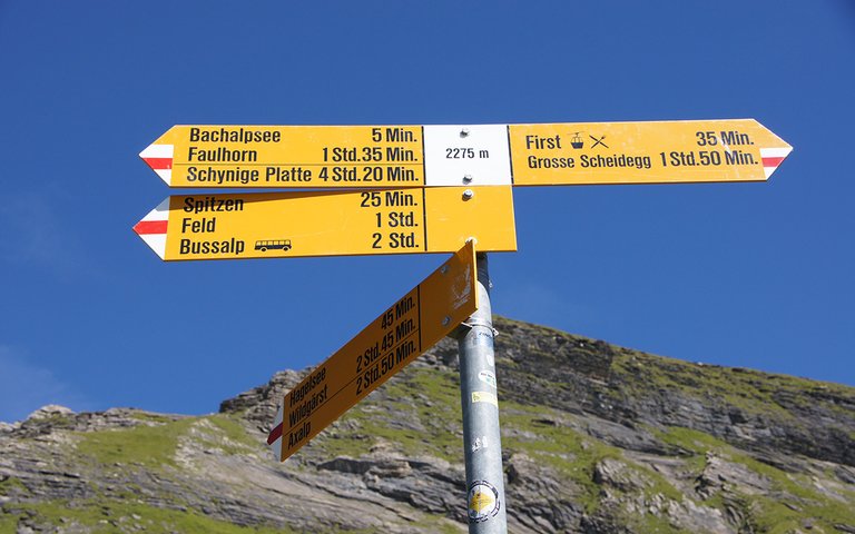 B of BW – Bergwanderweg Mittelschwieriger Bergweg Het Bgaat ergwanderweg T2 (balisage blanc-rouge-blanc) E – Escursionistico