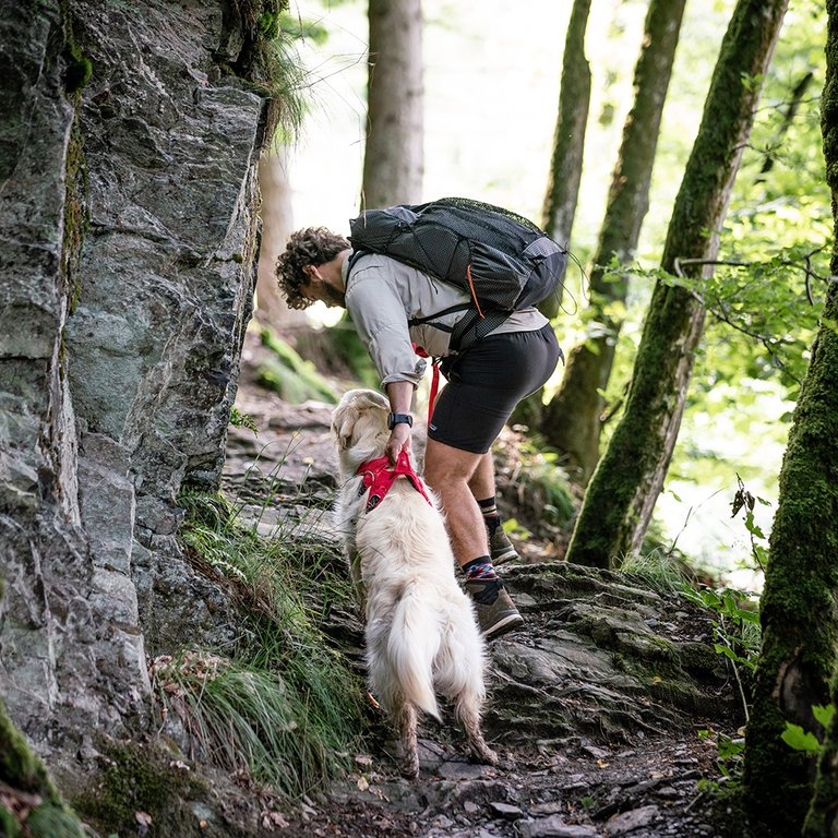 Notre testeur adore « être en plein air ». Arne Lannoo, 31 ans, responsable du département Évasion à l’A.S.Adventure de Furnes, marche tous les jours : il se promène avec son fidèle compagnon à quatre pattes, court, part parfois une journée dans les Ardennes ou se rend en haute montagne avec sa tente et son sac à dos pour une randonnée de plusieurs jours.